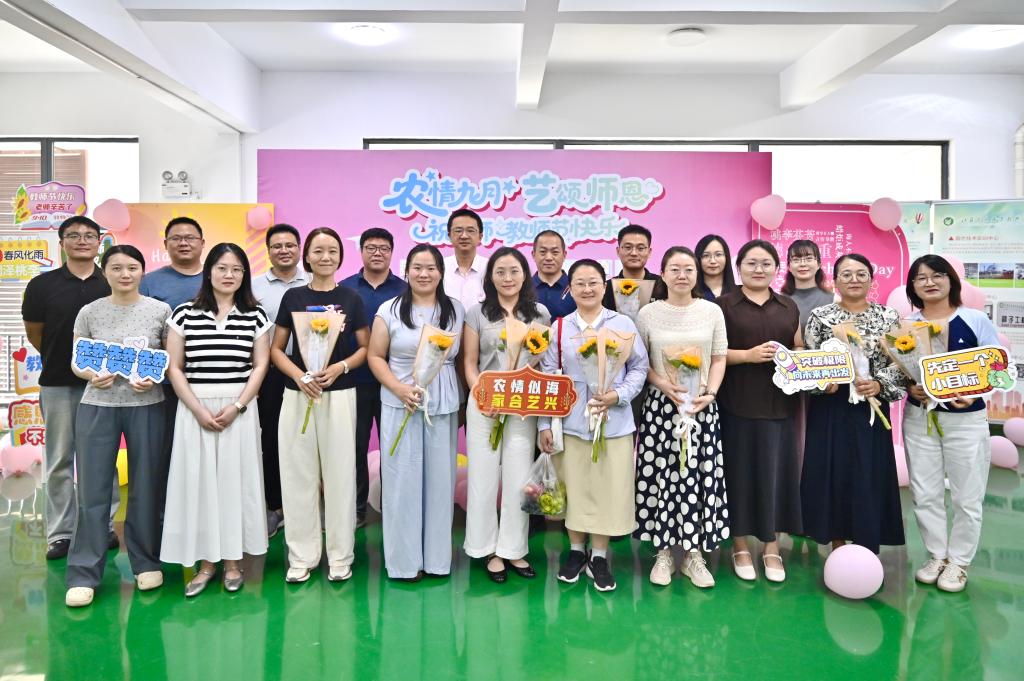 2025年9月10日下午,农学园艺学院党总支、农学园艺学院分工会在研发楼二楼党建会议室举行“弘扬教育家精神,勇担育才新使命”第41个教师节庆祝活动。学院领导班子、新入职及新转入教师、教职工代表等近四十人齐聚一堂,通过庄重而温馨的仪式、榜样对话和师徒结对等多种形式,共同致敬崇高师道,凝聚育人共识,激发使命担当。