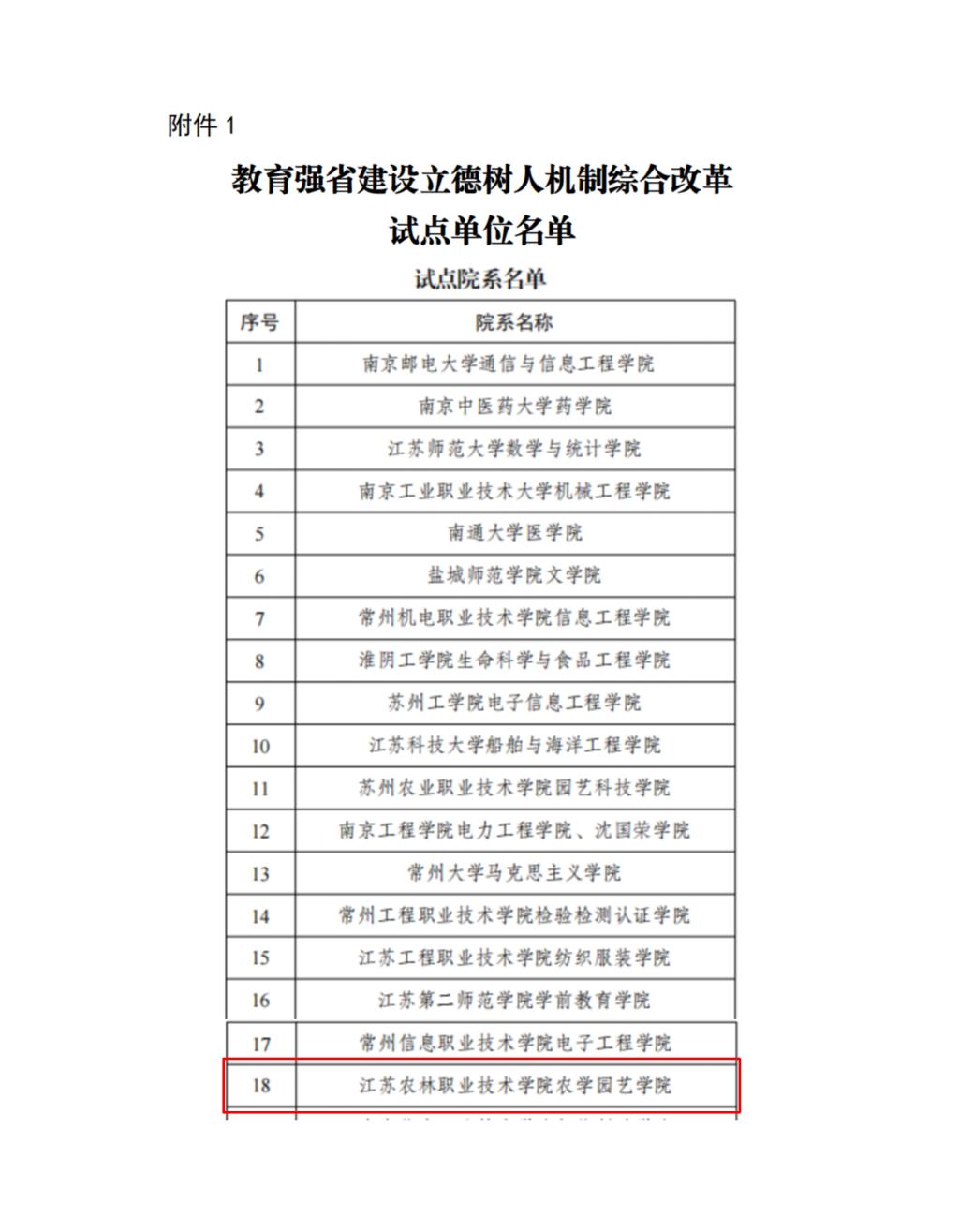 近日,中共江苏省委教育工委、江苏省教育厅发布《关于公布教育强省建设立德树人机制综合改革试点单位名单的通知》(苏教社政函〔2025〕6号),全省确定10个试点高校与30个试点院系,我院农学园艺学院凭借在育人工作中的突出表现与创新实践,跻身试点院系之列。