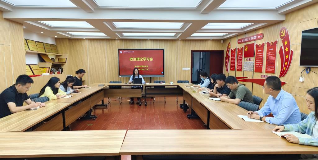 2025年10月17日,现代农业系党支部在研发楼农学园艺学院党建会议室召开政治理论学习会,会议由党支部副书记黄琼主持。