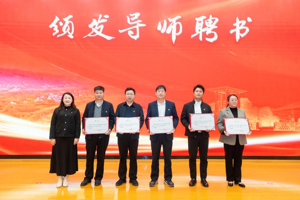 第四环节举行“新农人”成长导师聘任仪式。农学园艺学院党总支董慧书记宣读聘任决定,期望导师倾心助力学生成长,分享经验、解读动态、指导实践创新。随后,董慧为五位书记颁发聘书,学院与亿元村正式建立协同育人长效联动机制。