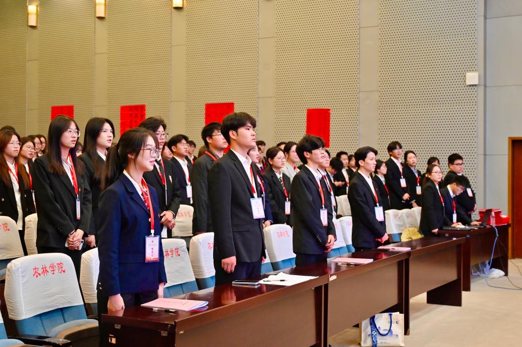 大会在庄严的国歌声中正式拉开帷幕。学院团委书记乔小倩首先致辞,她对团委与学生会在过去一年所开展的工作给予了充分肯定,高度赞扬了学生干部们展现出的强烈责任感与无私奉献精神。同时,她向全体学生干部提出三点期望:坚定理想,厚植爱农情怀;践行服务,提升工作效能;锤炼本领,勇担兴农使命。随后,学工处副处长陈慧敏为大会送上祝贺,他鼓励学生干部坚守服务初心,主动参与校园治理,在实践中积累经验、成长成才。学院党总支副书记董慧回顾总结上一届学生会工作,肯定其务实担当,在多方面取得显著成效。她对青年提出三点希望:志存高远,做时代主人;增长才干,做示范表率;砥砺品质,做社会模范。同时强调学生会要聚焦同学需求,解决实际问题,激发青春活力。