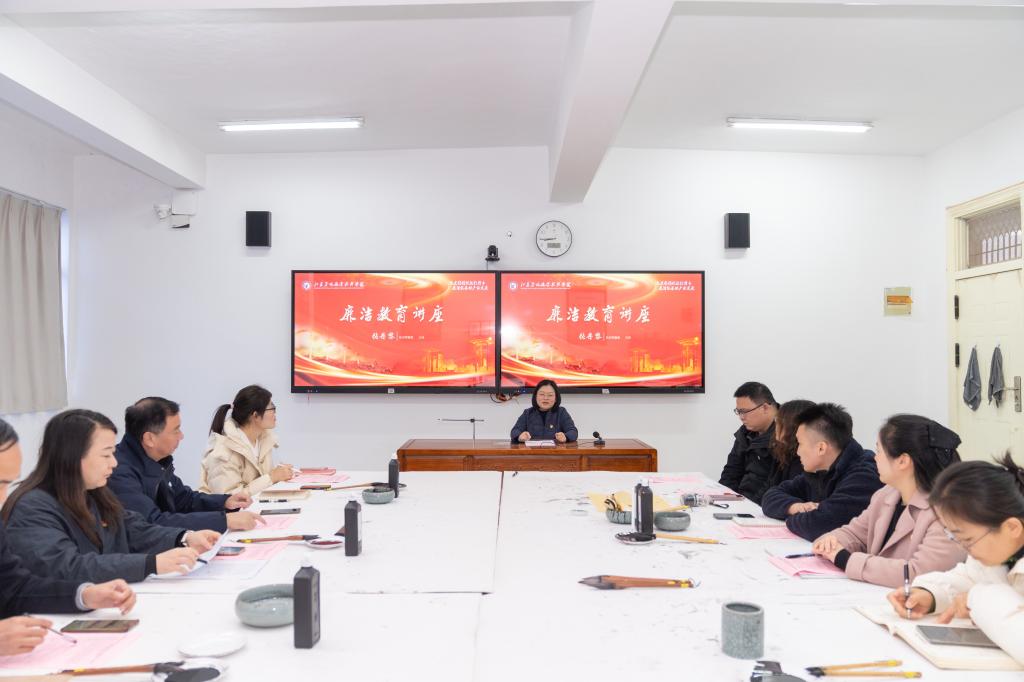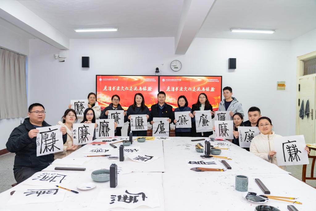 廉洁教育讲座环节,张丹黎主任以“守正党纪责任,固本行业诚信——筑牢农业科技发展的廉洁基石”为题,结合农业领域与教育系统实际案例,剖析廉洁从业重要性,针对校行合作廉政风险点给出防范建议。随后的廉洁书法文化交流体验中,朱国良现场指导嘉宾与教师创作廉洁主题书法作品,以传统艺术为载体传播廉洁理念。