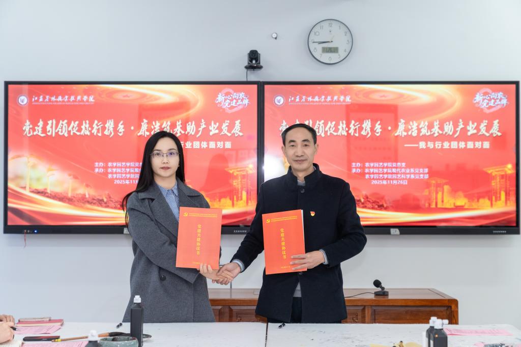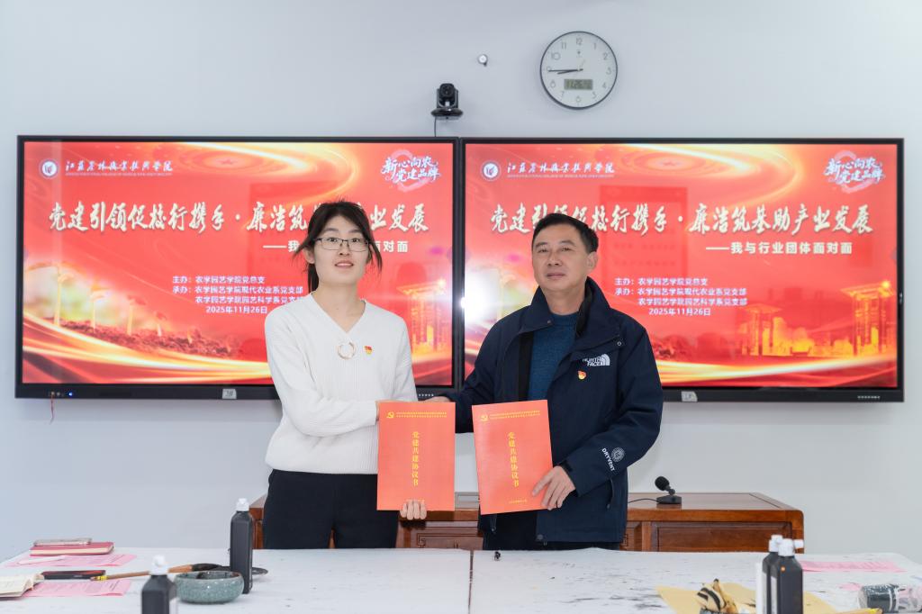 活动现场,农学园艺学院现代农业系党支部、园艺科学系党支部分别与江苏省作物学会、江苏省测土配方施肥协会签订《党建共建协议书》,明确双方将在组织共建、人才共育、资源共享、产业共兴、廉洁共守等方面深化协作,共同构建“党建引领、校行协同、廉洁保障、互利共赢”的发展新格局。