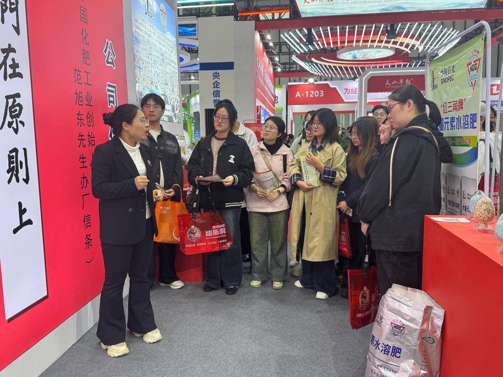 博览会上,师生共参观100余家肥料企业展位,了解企业情况,学习肥料产品知识,并向相关公司发放了学院2026届毕业生招聘简章,邀请企业参加学院即将举行的秋季双选会。