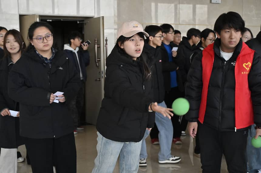 活动现场围绕“共融、共建、共享”的理念,设置了“吸福气”“好运滚滚来”等趣味互动游戏。同学们在志愿者的引导下有序参与,通过个人挑战与两人协作相结合的方式完成任务,在轻松活跃的氛围中增进交流、加深了解。不同民族的同学在合作闯关中相互配合、彼此鼓励,现场欢声笑语不断,充分展现了青年学生团结友爱、积极向上的精神风貌。