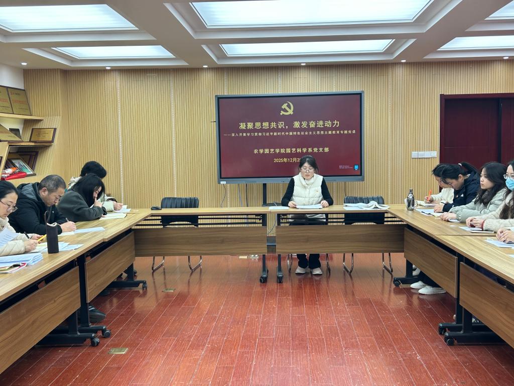 2025年12月25日,园艺科学系党支部在研发楼农学园艺学院党建会议室开展书记讲党课活动,党支部副书记杨洪俊以“凝聚思想共识,激发奋进动力”为题为支部党员讲授专题党课。