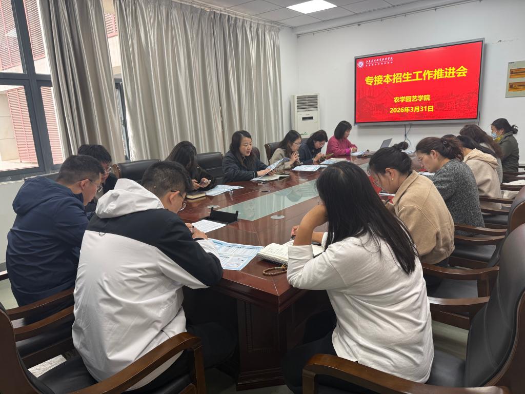 会议聚焦2026年专接本招生工作的关键环节进行深入研究和部署。学院“专接本”相关负责人围绕专接本“农林经济管理”“园艺”“环境工程”三个专业课程设置、政策咨询答疑以及招生宣传工作方案进行了详细讨论,明确了各项任务的责任分工与时间节点。董慧在会议中强调,“专接本”招生工作是学院人才培养的重要环节,事关学生发展前途与学院声誉。她要求各位班主任老师务必高度重视,提高站位,准确把握政策要求;各专业、各班级要协同配合,主动作为,将报名咨询与宣传服务做细做实,确保2026年专接本招生工作圆满完成。