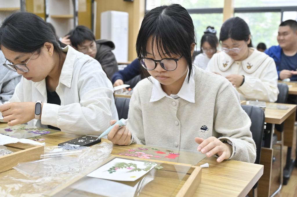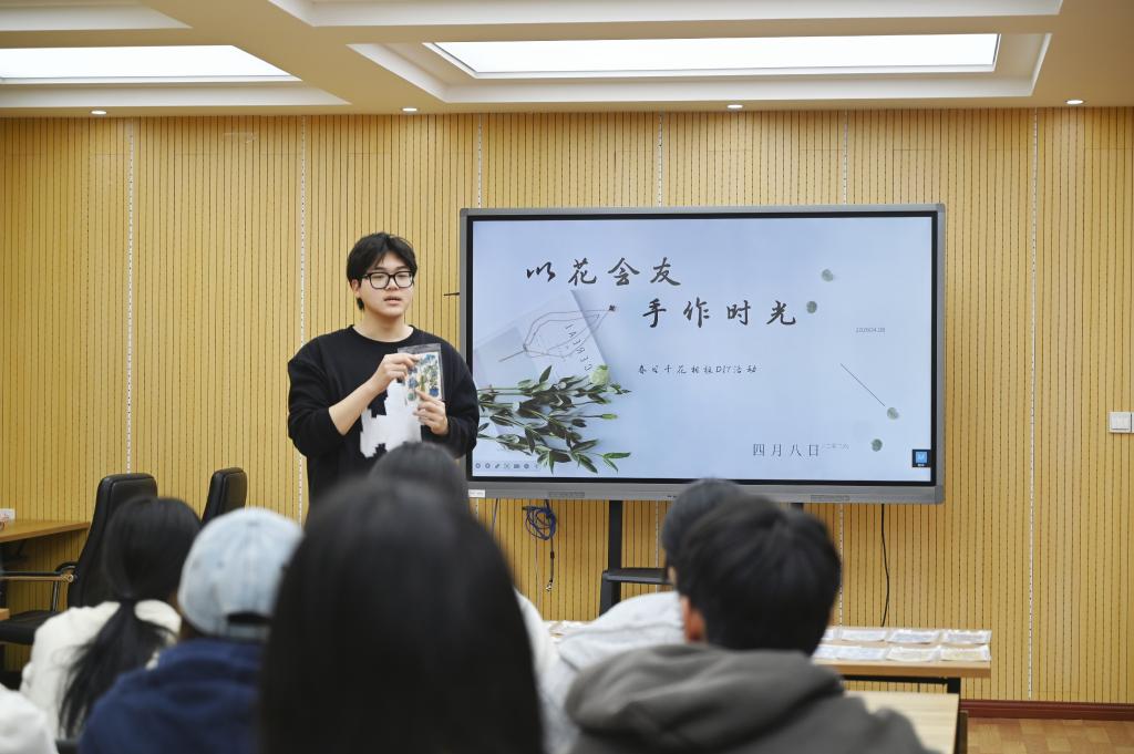 活动现场温馨有序,同学们依托园艺专业所学的花卉识别、搭配知识,静心择花、修剪、粘贴,将春日生机与内心情绪融入干花相框创作,在作品背面写下心灵感悟,让每一件作品都成为专属“心灵印记”。创作结束后,大家相互欣赏、交流心得,在轻松氛围中释放压力、增进理解。
